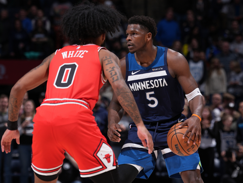 森林狼:戈贝尔、兰德尔、爱德华兹、麦克丹尼尔斯、迪文琴佐